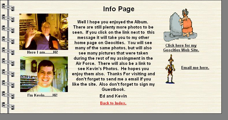 Go to Previous Page Display the image, cavemandressed2.jpg, full size Display the image, Kevin_4.jpg, full size Open the Internet page, http://www.geocities.com/ratpack122 Send an e-mail to the address, kingcaveman@citlink.net Open page Number 1